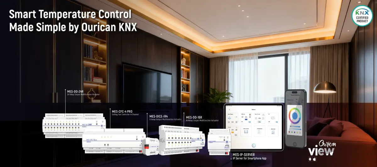 Ourican’s MES-DICE-IR4 controller enhances ceiling fan and air conditioning (AC) control within the KNX ecosystem: